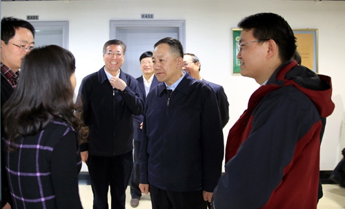 在我校畜牧教学实验基地、国家肉牛改良中心,陈强先后参观了肉牛养殖场、科研实验室,听取了民盟陕西省委副主委、动科学院教授、国家肉牛改良中心主任昝林森的工作汇报,了解肉牛、奶牛改良研究及在生产中的应用情况,询问科研团队组建及实验室建设情况,并与正在这里做研究的博士生交谈。在我校理科大楼,陈强参观了我校引进人才、校致公党支部副主委、生命学院郁飞教授实验室,了解该实验室的建设、研究情况,同时兴致勃勃地就转基因研究的背景、应用等情况与孙其信校长、郁飞教授等进行探讨。