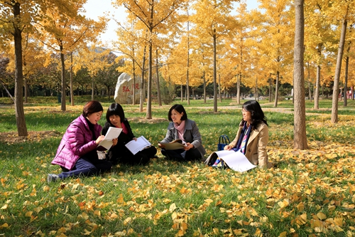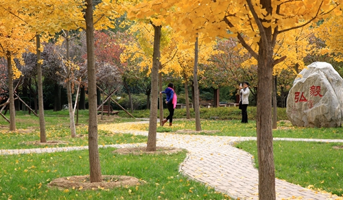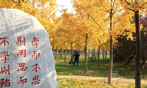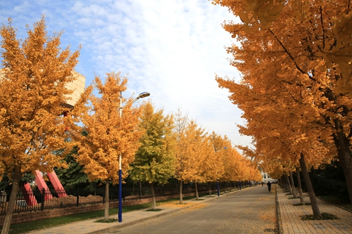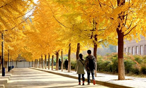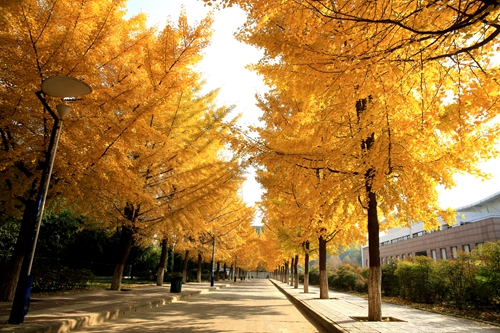 立冬过后,阳光时来。我校的数条银杏路与数片银杏林热闹了,金黄满眼,暖意融融。