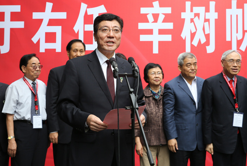 张宝文、陈宗兴、梁桂、孙其信、吴为山等领导与辛树帜塑像合影