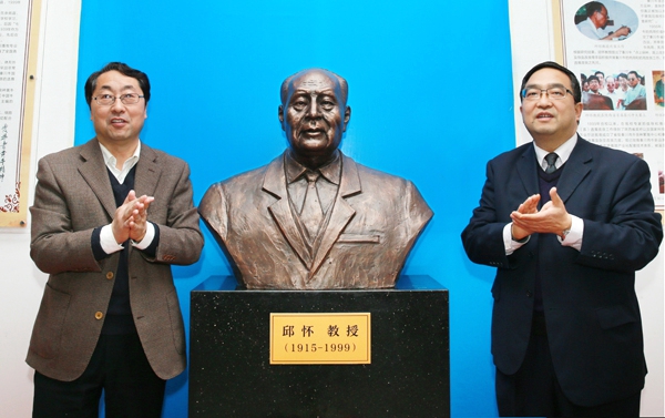 纪念会之前,举行了邱怀教授塑像揭幕和史迹陈列室开展仪式。展室陈列了邱怀教授不同历史时期的研究手稿以及简朴的办公陈设,再现了邱怀先生几十年奋斗历程和为我国养牛事业发展做出的重要贡献。