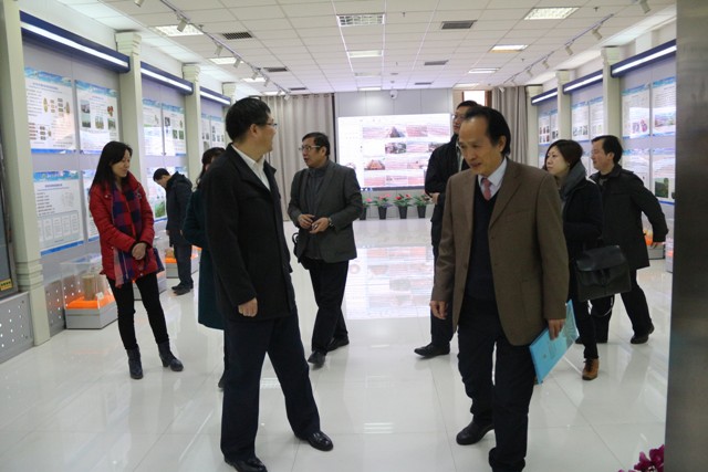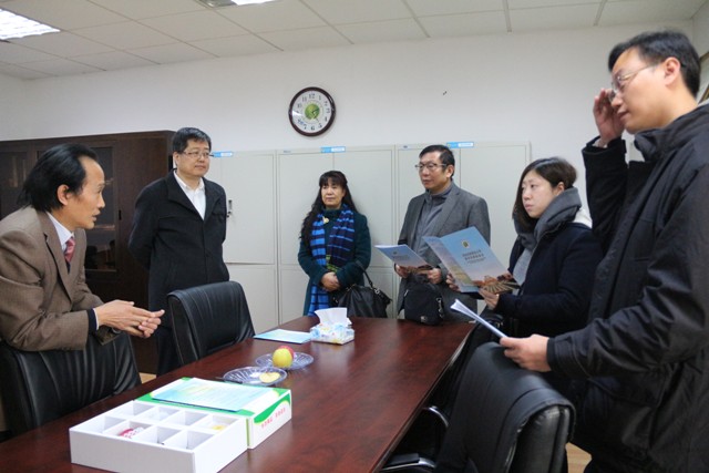 客人们首先深入我校农业科技推广展厅,系统了解我校以大学为依托的农业科技推广模式运行情况,张正新向客人们做了详细介绍。随后,大家来到我校校园模拟沙盘前,在罗军同志介绍了参观了解我校校园布局、试验基地建设等基本情况。最后,客人们走进我校教育基金会办公室,吴万兴向大家介绍了我校教育基金会的情况,并邀请大家品尝我校农业科技新成果——苹果新品种“瑞阳”和“瑞雪”。