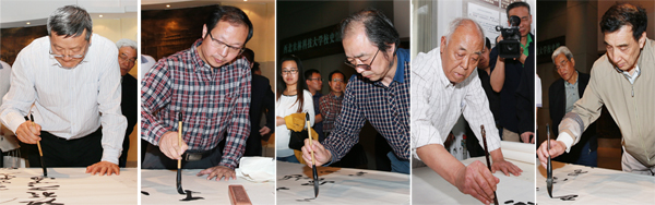 研讨会结束后,专家们参观了于右任教育思想纪念馆和右任书院。几位书法家泼墨挥毫,举行了书法示范与笔会。