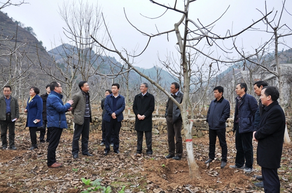 在山阳县城关镇桃园村核桃园考察