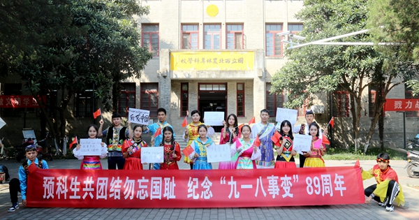 9月18日,学院开展“勿忘国耻,我为‘九一八’发声”主题活动,各民族预科生纷纷换上民族服饰,用本民族的文字书写下自己对祖国母亲的美好祝愿。同时,同学们怀揣爱国之心,挥舞着手中的五星红旗,深情地歌唱《我爱你中国》,一字一句皆是对先烈的缅怀、对祖国的热爱、对民族团结的珍视。