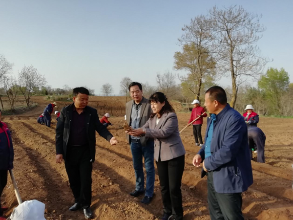 2020年4月9日,王渭玲在麟游县丈八镇指导黄芪种植