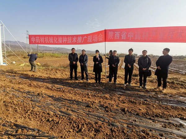 王渭玲在田间指导中药材机械化种植。