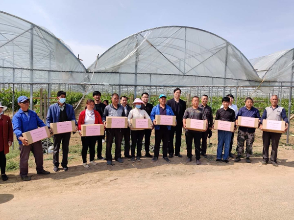 这次,面对基层群众生产的需求,机电学院邀请我校葡萄栽培技术专家张宗勤教授、果园机械专家崔永杰教授,深入乾落村田间地头,手把手教种植户技术,对种植户提出的问题一一做以回答,广大种植户赞扬这种田间地头送技术的方式,他们听得懂、学得会,是个好办法,值得推广。张军厂老师还代表学院为10位种植户赠送了8万枝葡萄绑枝卡,并指导种植户现场使用。