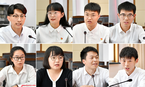 水建学院王博、林学院付雪宁、动科学院贾凯、生命学院冯旭寅、水保所林红、草业学院孙运府、园艺学院李宏洋、资环学院王晓毓在座谈会上回顾了在学校的成长历程,表明了到边疆奉献青春使命的信心和决心,深情表达了对母校和老师的培养感恩之情。