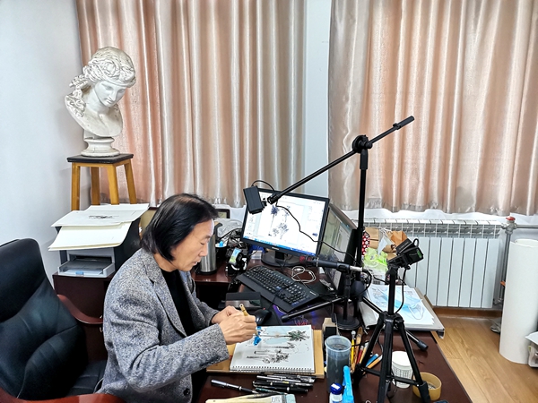提高线上教学效果,确保学生不下线,师生有效的互动是关键。如何加强线上课堂的管理与互动?课程组采取了以下几种方式:一是让学生每一节课打卡报到截屏保存;二是教师上传示范作画详细步骤过程,让学生可以仔细观摩,跟随教师作画步骤自己演练。遇到难画的步骤,教师详细讲解演练,学生反复回看练习。课程组成员相互听课,分工合作相互配合,共同指导学生课堂绘画技巧,确保了解掌握学生的跟进程度和掌握程度;三是让学生在课程群中提交课堂与课外作业大家共享,课程组教师在群中对学生提交的作业通过语音加文字的形式进行系统点评,并设定画面构图延伸和同学们一起讨论完善画面效果和意境,让学生在群里热火朝天关注讲课内容、开拓思维、相互交流,提高学习效率。